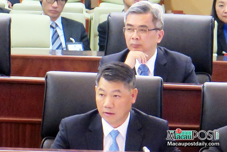 Public Security Police (PSP) Commissioner Leong Man Cheong addresses yesterday’s plenum in the legislature’s hemicycle. Photo: Tony Wong