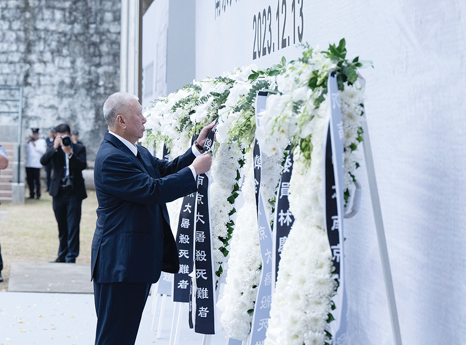 The participants sang the national anthem, observed a moment of silence and laid wreaths to mourn the Nanjing Massacre victims.