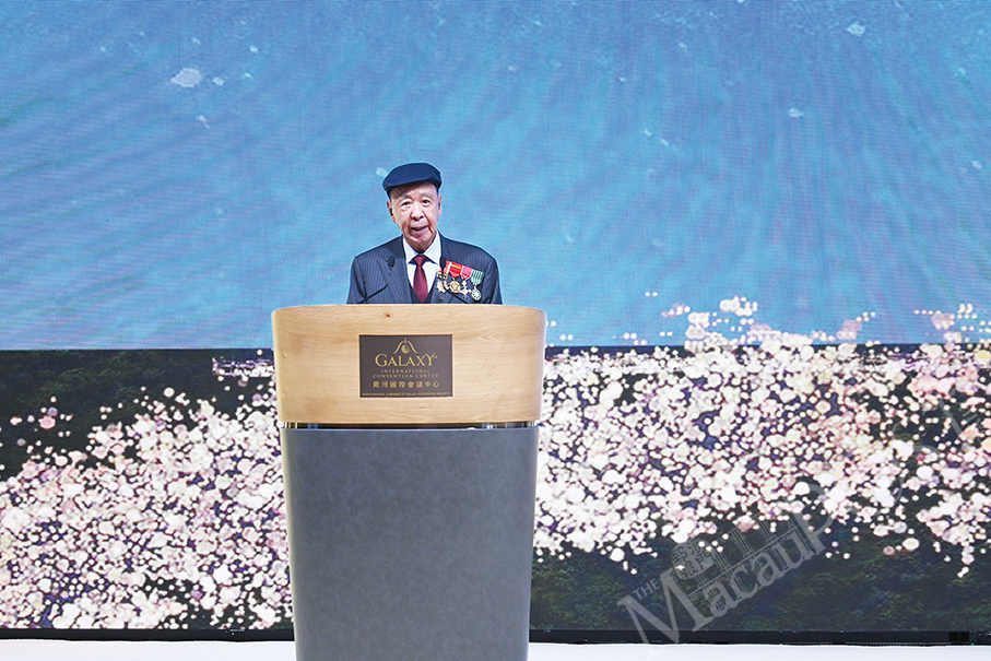 GEG founder and Chairman Lui Che Woo delivers a speech during yesterday’s Phase 3 Grand Opening at the Galaxy International Convention Centre (GICC) in Cotai.