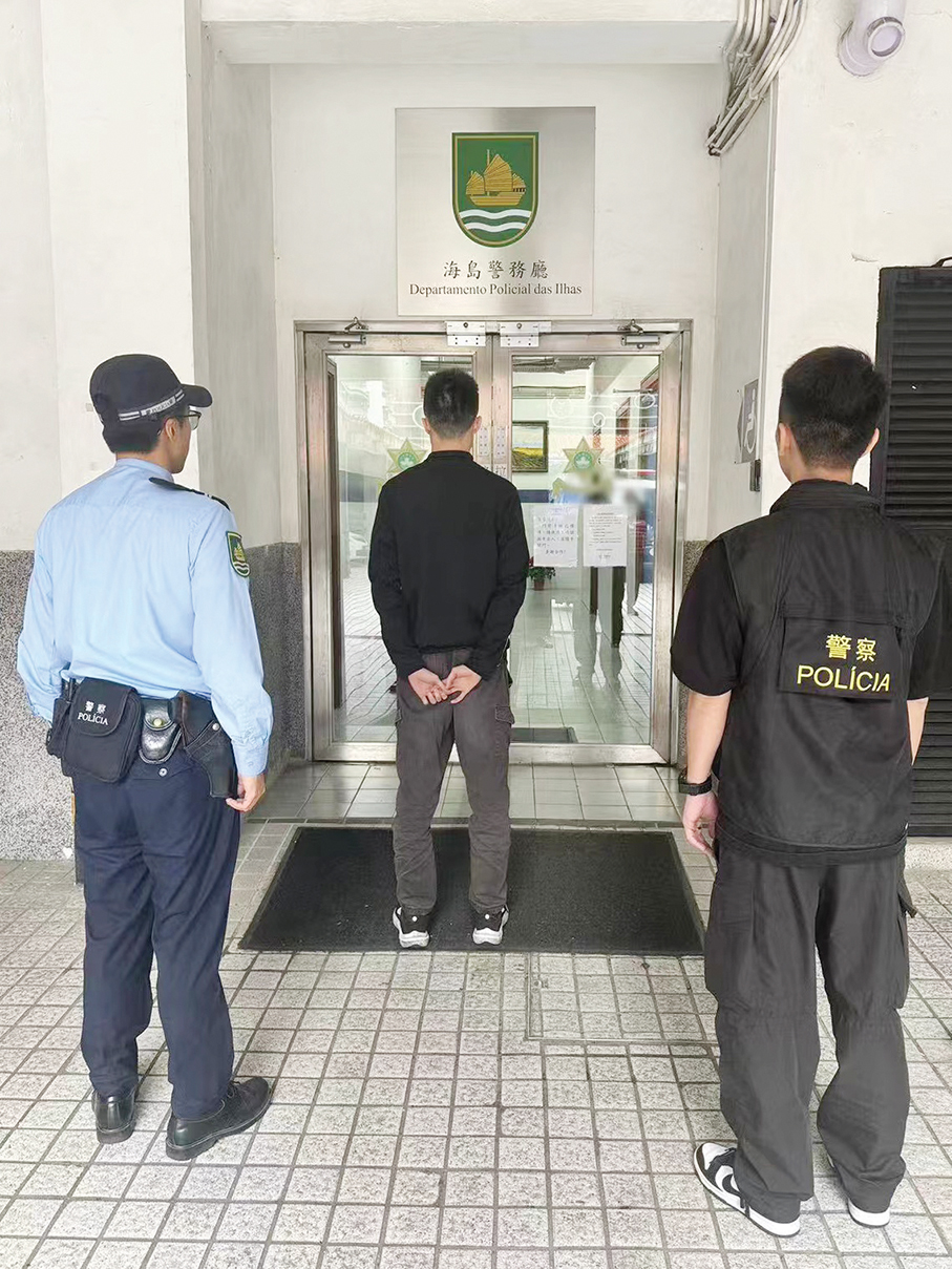 This undated handout photo provided by the Public Security Police (PSP) yesterday shows the suspect being escorted to a police station.