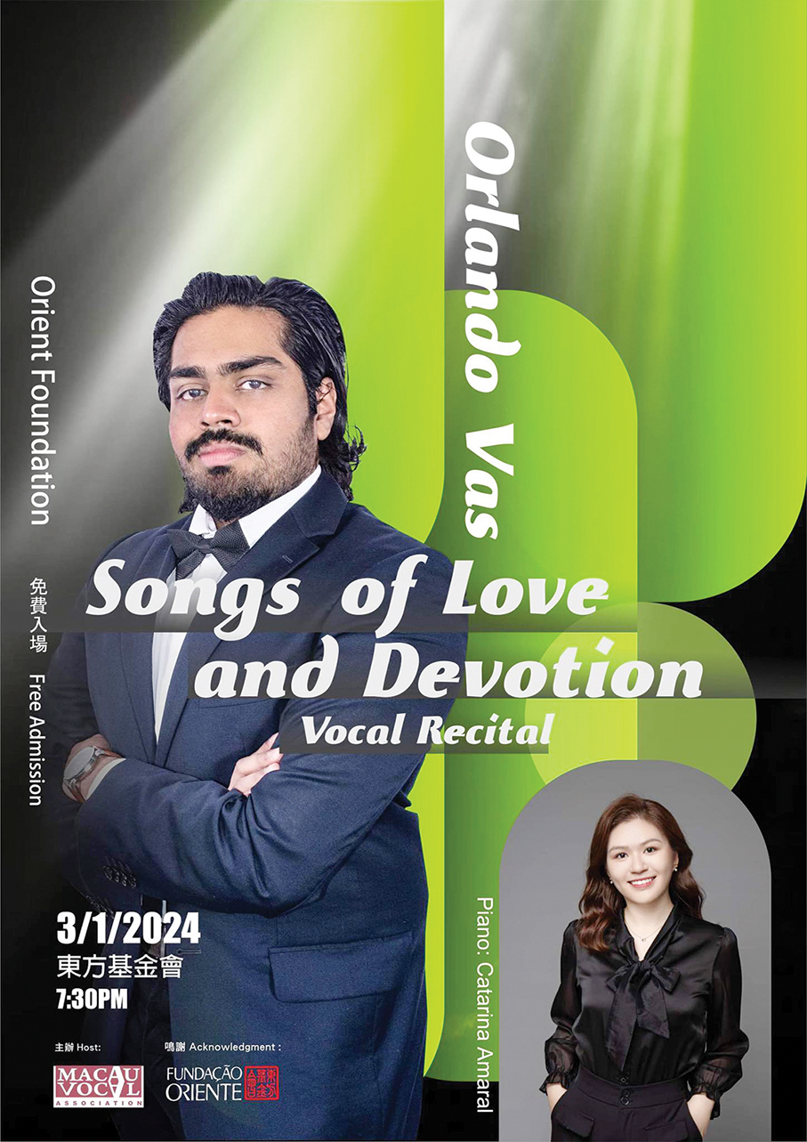 Portuguese Indian tenor Orlando Querobino Vas recently had an online conversation with The Macau Post Daily regarding his upcoming performance on January 3 at the Orient Foundation (FO). The event, organised by the Macau Vocal Association (MVA), also features pianist Catarina Amaral.
