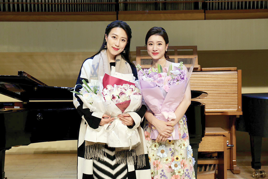Peggy Chan Pui Ian (right) and professor Su Cheng (蘇暢) pose at Chan’s recital in Beijing on December 11, 2023.
