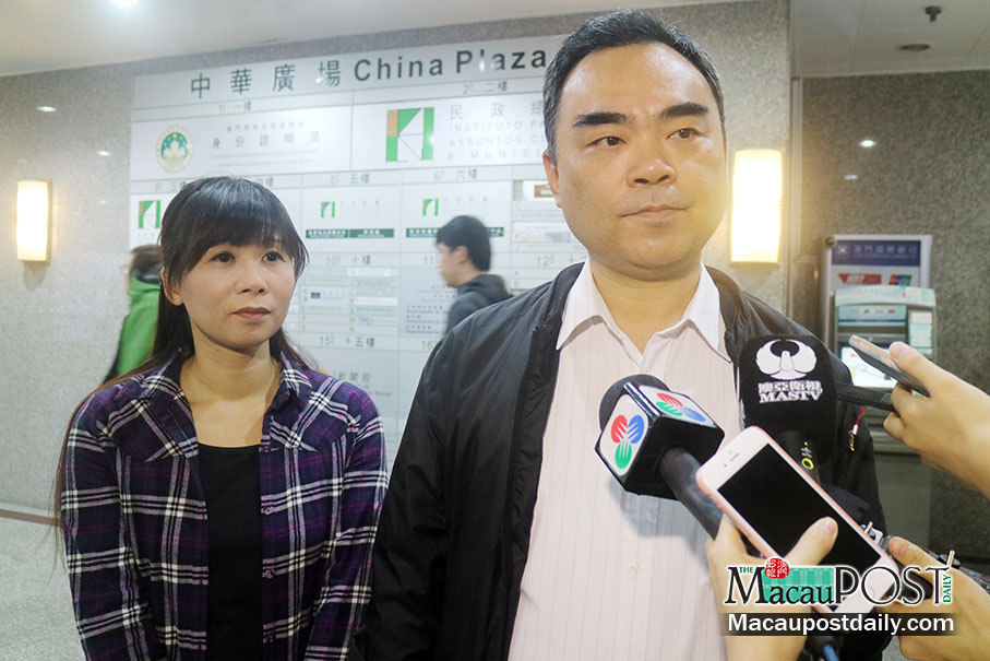 New Macau Gaming Workers’ Rights Union President Cloee Chao Sao Fong (left) and Vice-President Lei Man Chao speak to reporters before a meeting with officials of the Gaming Inspection and Co-ordination Bureau (DICJ) at China Plaza yesterday. Photo: Debby Seng