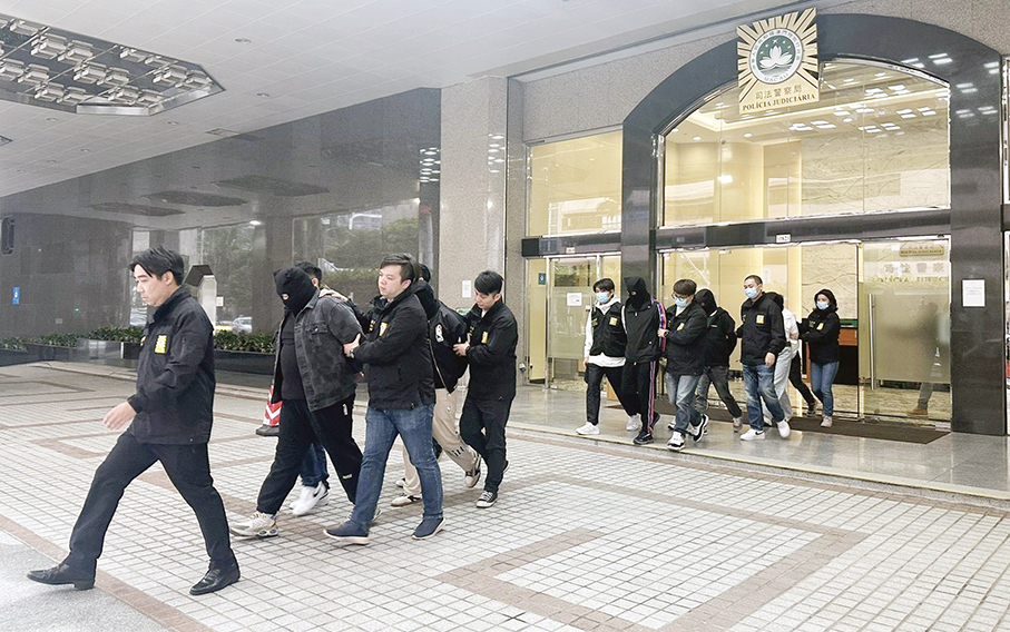 During a routine patrol at a casino in Cotai at noon on Thursday, PJ officers saw that a gambler handed over a casino chip worth HK$100,000 to Pan after he had hit a lucky streak, which was then exchanged for 10 chips worth HK$10,000 each by Liu, Lei said, adding that the officers arrested the five suspects at about 1 p.m. that day as they suspected that the quintet had deducted usurious “interest” from the gambler.