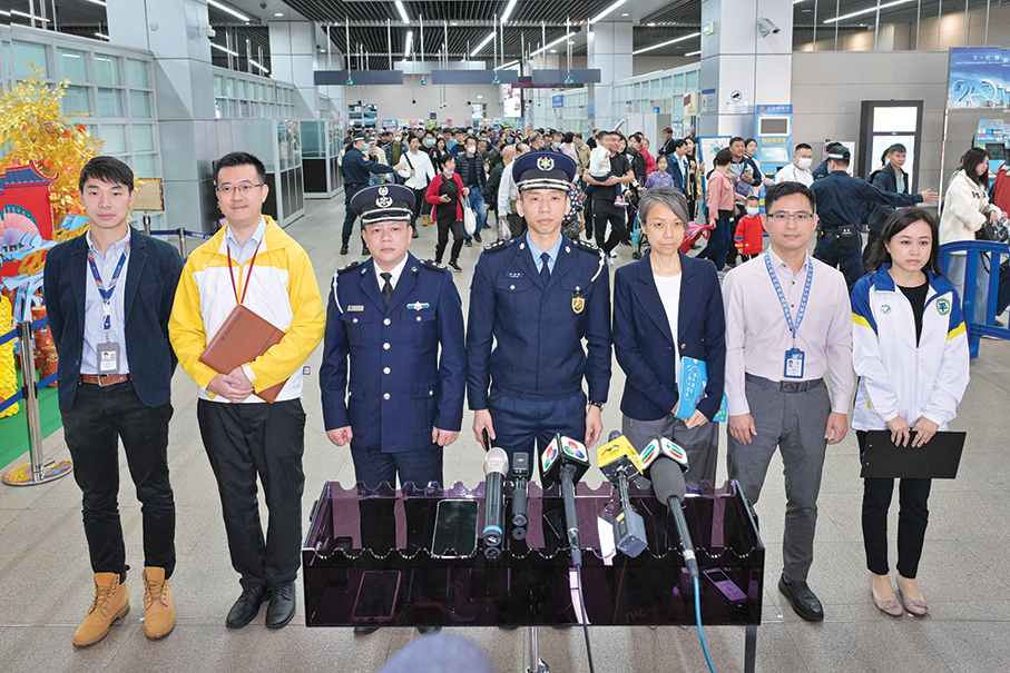 Lei Tak Fai, who heads the Public Security Police’s (PSP) Public Relations Division, made the remarks during a press briefing at the Barrier Gate checkpoint where he and officials from several other public entities briefed reporters about the local government’s ongoing preparations for tackling the expected high number of visitors during the CNY holiday period.