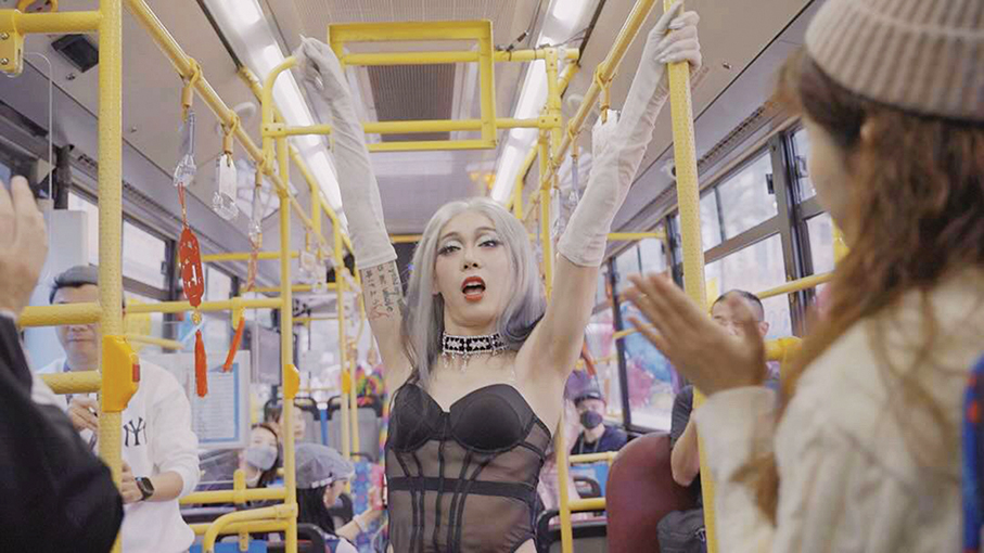 Drag queens dance on a hired bus travelling between Macau and Taipa, an outreach activity during the recent Macau City Fringe Festival. - All photos provided by the organiser