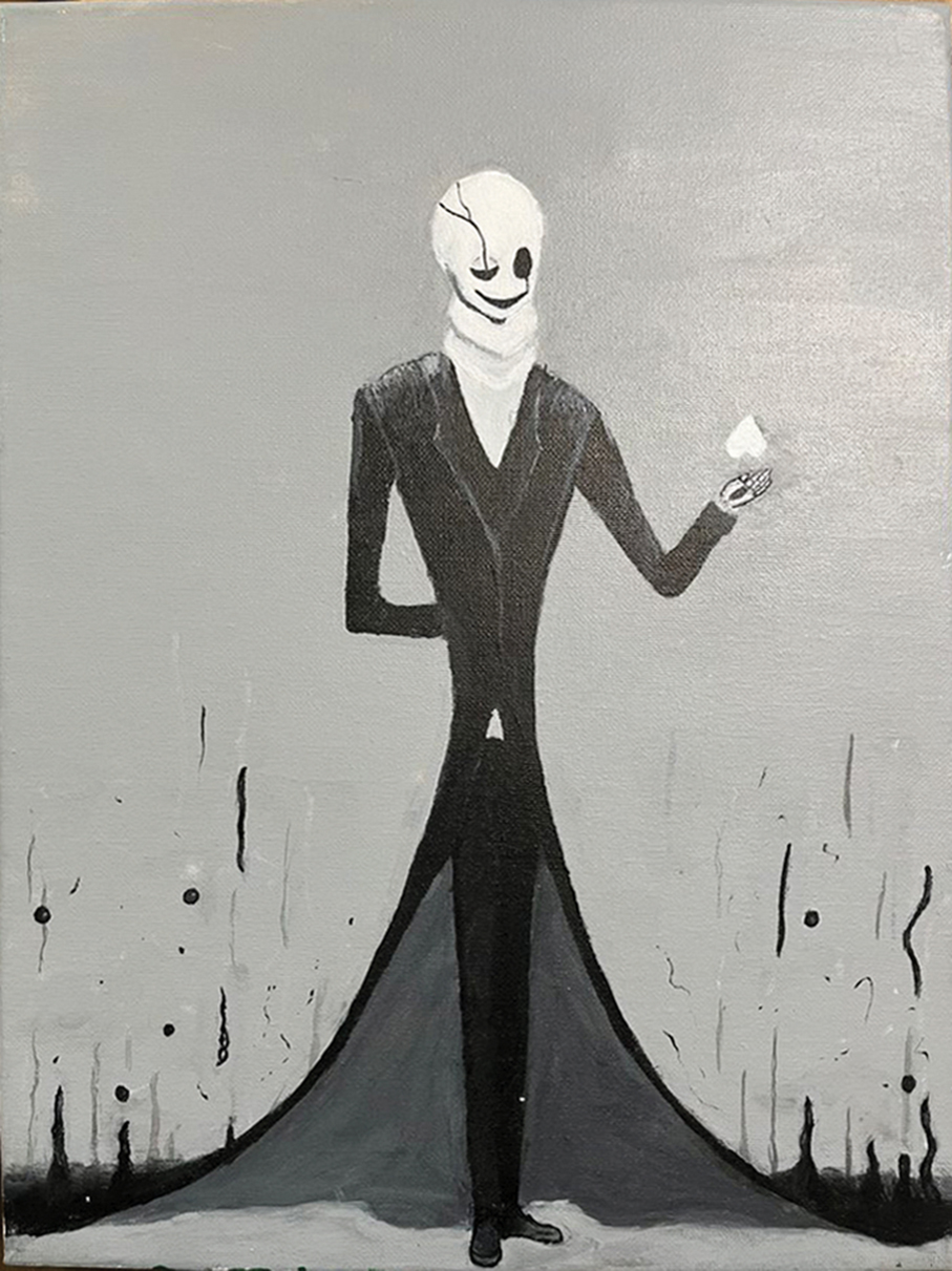 One of the drawings that Elvis has done is of a skeleton which is someone in a place where there is nothing – mixed with death – the life being the butterfly and plants. “I think it is really cool,” said Elvis.