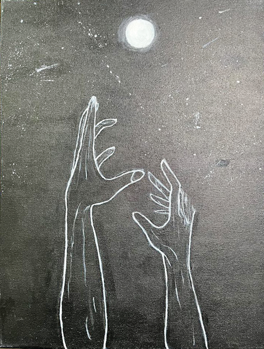 One poignant drawing that Elvis has done is of hands reaching for the Moon. “I drew this because a classmate was being bullied, reaching for the Moon is a meaning of hope that he will be free,” Elvis said.