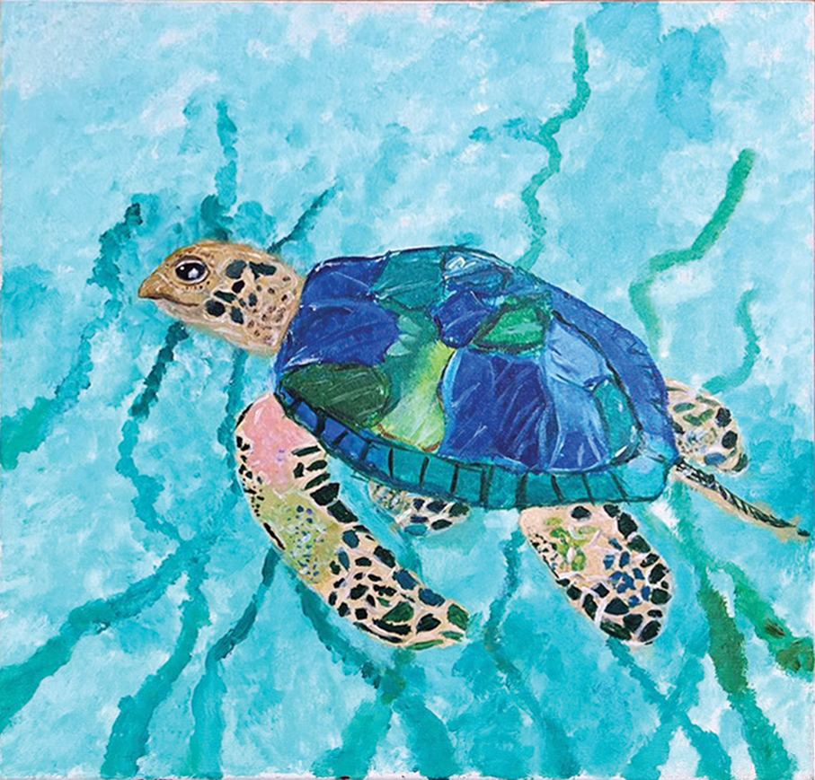 A very colourful drawing in contrast is one of a turtle in the sea. “I drew this because I want to swim with the turtles,” Elvis said.