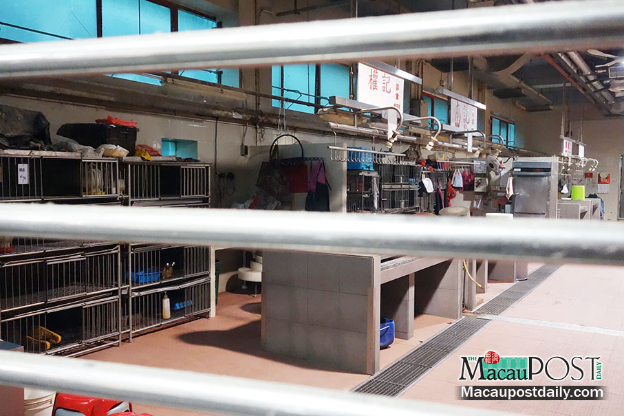 This photo taken yesterday shows several closed poultry stalls at the Sao Domingos Municipal Market Complex in the city centre, because of a temporary ban on all sales of live poultry in the city, following the confirmation of Macau’s first case of human bird flu infection on Tuesday. Photo: Annie Cheung