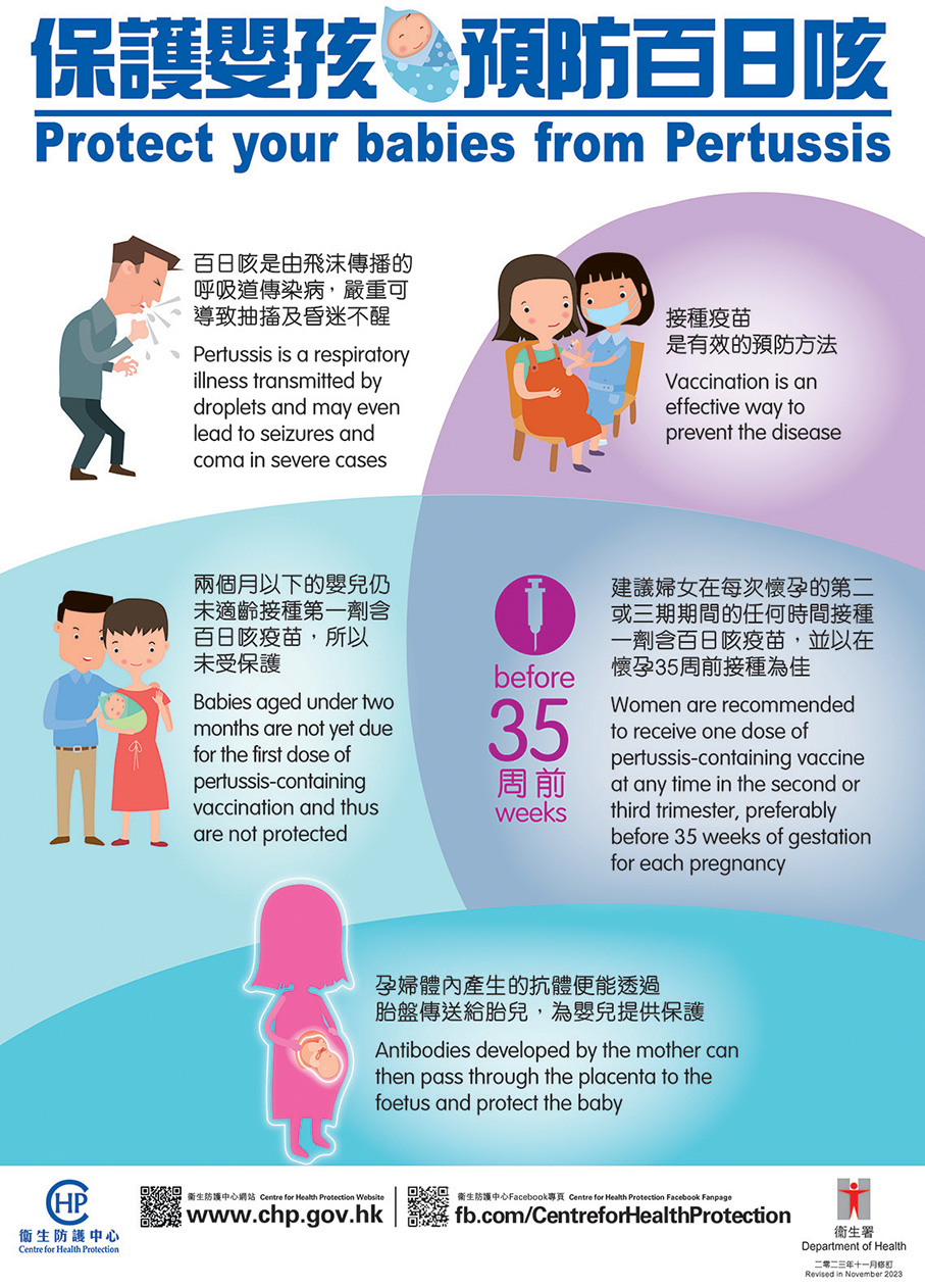 This poster downloaded from the website of Hong Kong’s Centre for Health Protection (CHP) yesterday shows information on whooping cough.