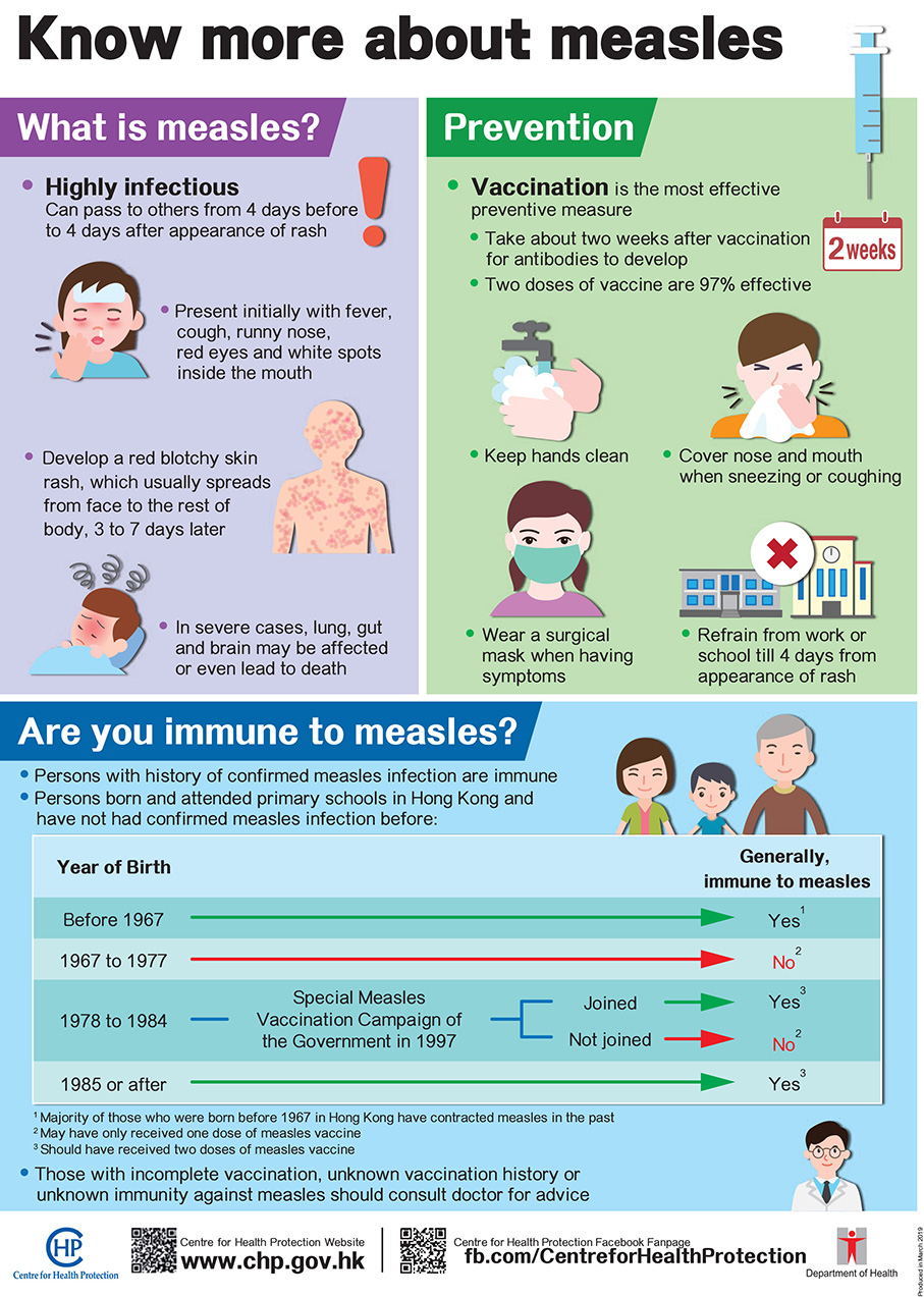 Moreover, according to the statement, those aged 18 or over who were born after 1970 should receive an MMR jab if they have never been infected with measles and have not been vaccinated against the disease after the age of one, particularly those who take care of babies such as domestic helpers and those working at day nurseries.
