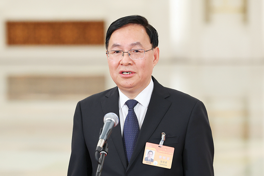Zhang Yuzhuo, chairman of the State-owned Assets Supervision and Administration Commission of the State Council, talks to journalists after the opening meeting of the second session of the 14th National People’s Congress (NPC) at the Great Hall of the People in Beijing yesterday. – Xinhua
