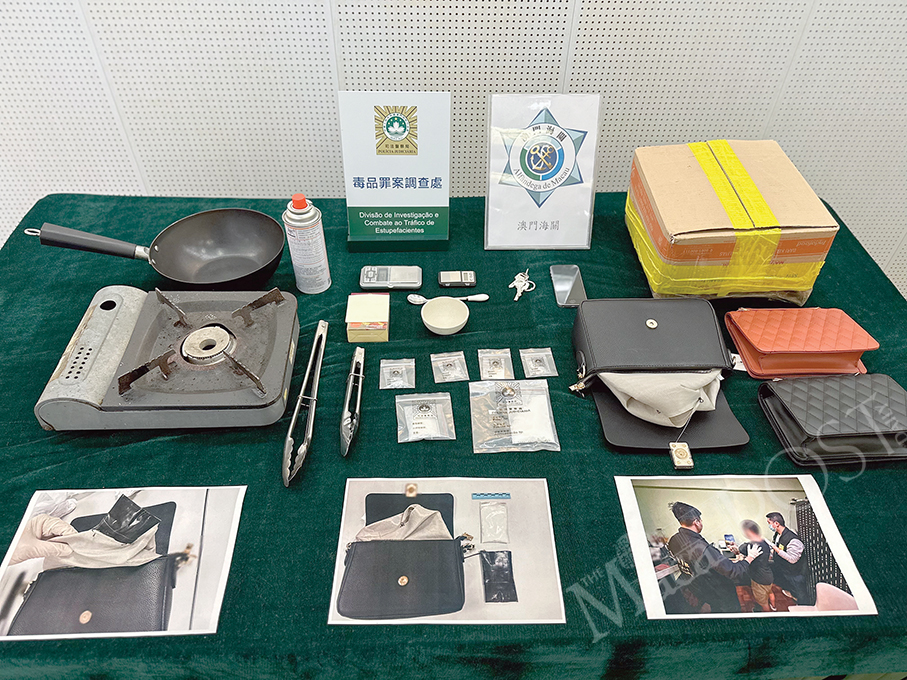 The Judiciary Police had recently received intelligence that a drug gang would send a parcel from overseas to Macau with drugs hidden in it, after which, with the assistance of the Macau Customs Service, the Judiciary Police identified the drug parcel and its addressee, Cheong said, adding that the cocaine was hidden inside three handbags in the parcel.