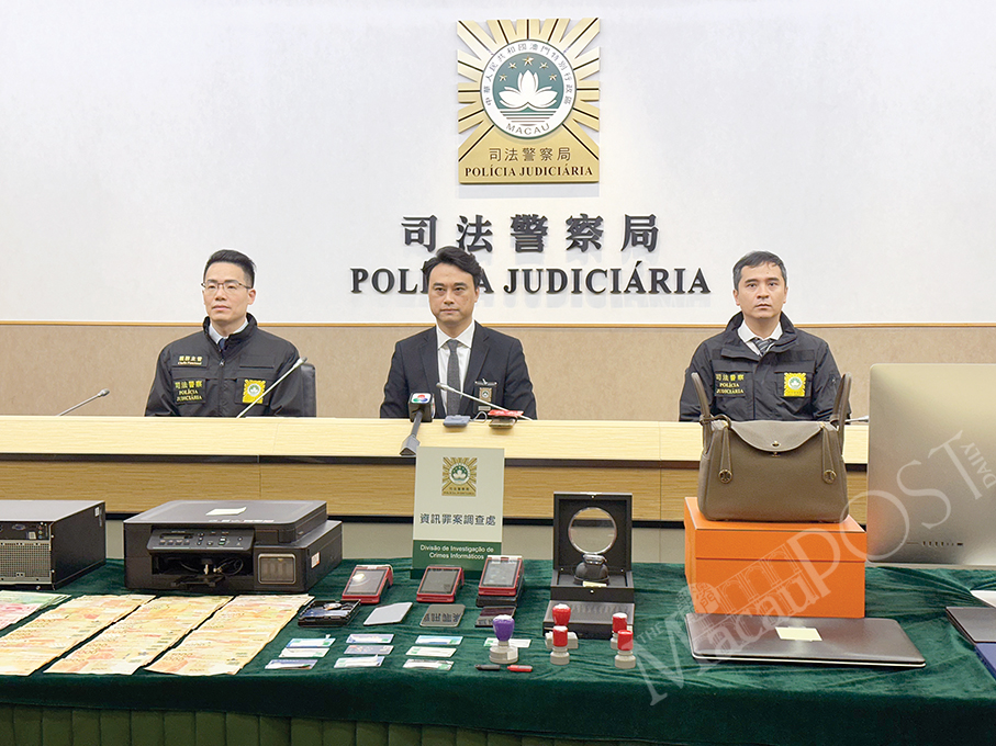 The Judiciary Police (PJ) busted on Wednesday a local credit card fraud gang, in which two businessmen and a female insurance agent illegally obtained a large amount of credit card information and used the data to carry out counterfeit transactions online through their businesses, defrauding at least 71 non-local credit card users out of 5.9 million patacas in 110 bogus “transactions” between late November and early December last year, PJ spokesman Cheong Kim Fong announced yesterday.