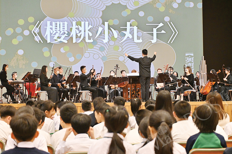 The Macao Chinese Orchestra (OCHM) presented its “Planting Musical Seeds” campus concert to primary school students of Kao Yip Middle School in Nape yesterday, with the event aiming to promote traditional Chinese music.