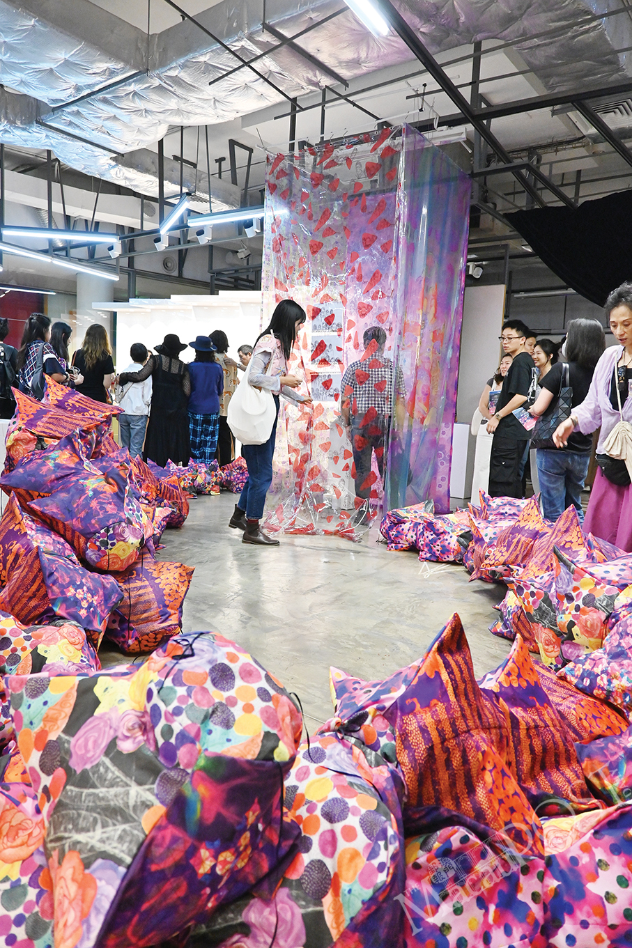 On the other side of the gallery, exhibition-goers will be able to see the vibrant colours of António’s artworks, one of which is an installation reminiscent of what one saw at a testing station during the pandemic. However, instead of being used for sanitisation and testing, the local designer said that it was instead used to sanitise one’s “negative emotions”, which needs to be done by the exhibition visitors before proceeding to the next part of the installation, which is the “patterned world” or “comfort zone” surrounded by soft thorns.