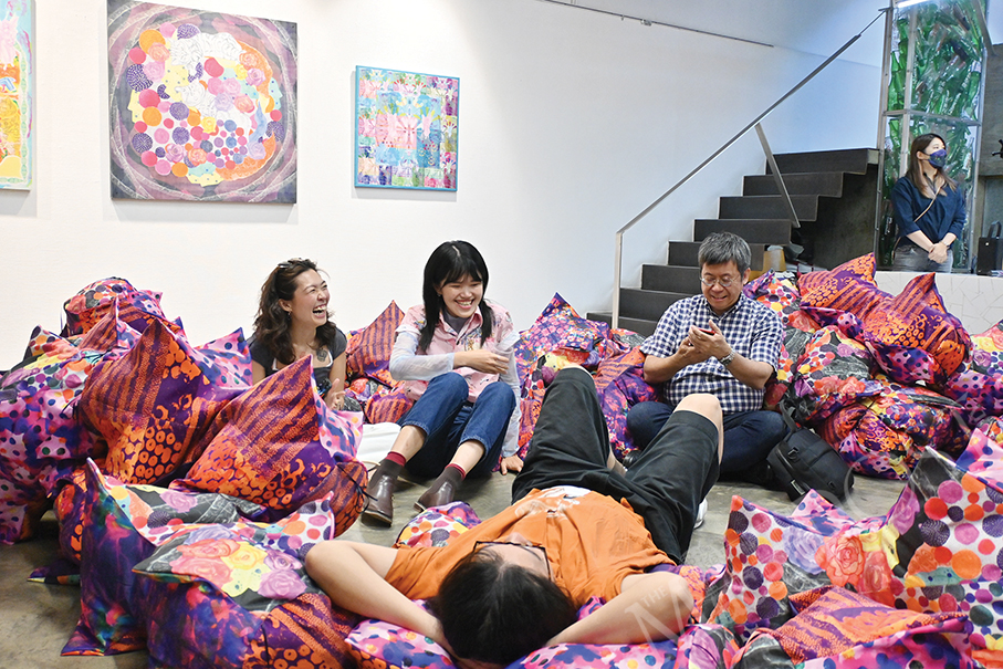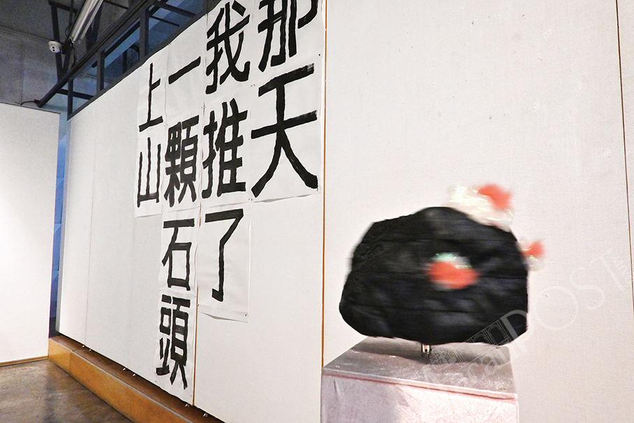 Hoi’s side of the exhibition, which is set under a dark backdrop, features installations, paintings, sculptures and video art. Ho said that she hoped to show that even if each day may seem to be the same or riddled with hopelessness, one could find a “flower or some kind of spotlight” within the monotony. “It’s our goal to find this kind of difference in our life”.