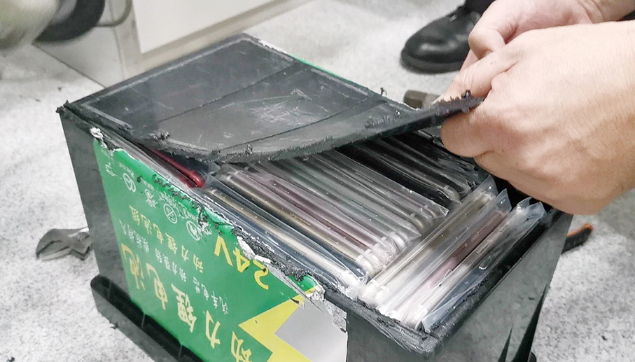 This handout photo taken last week and released by the Gongbei customs yesterday shows the smartphones inside the modified wheelchair battery.