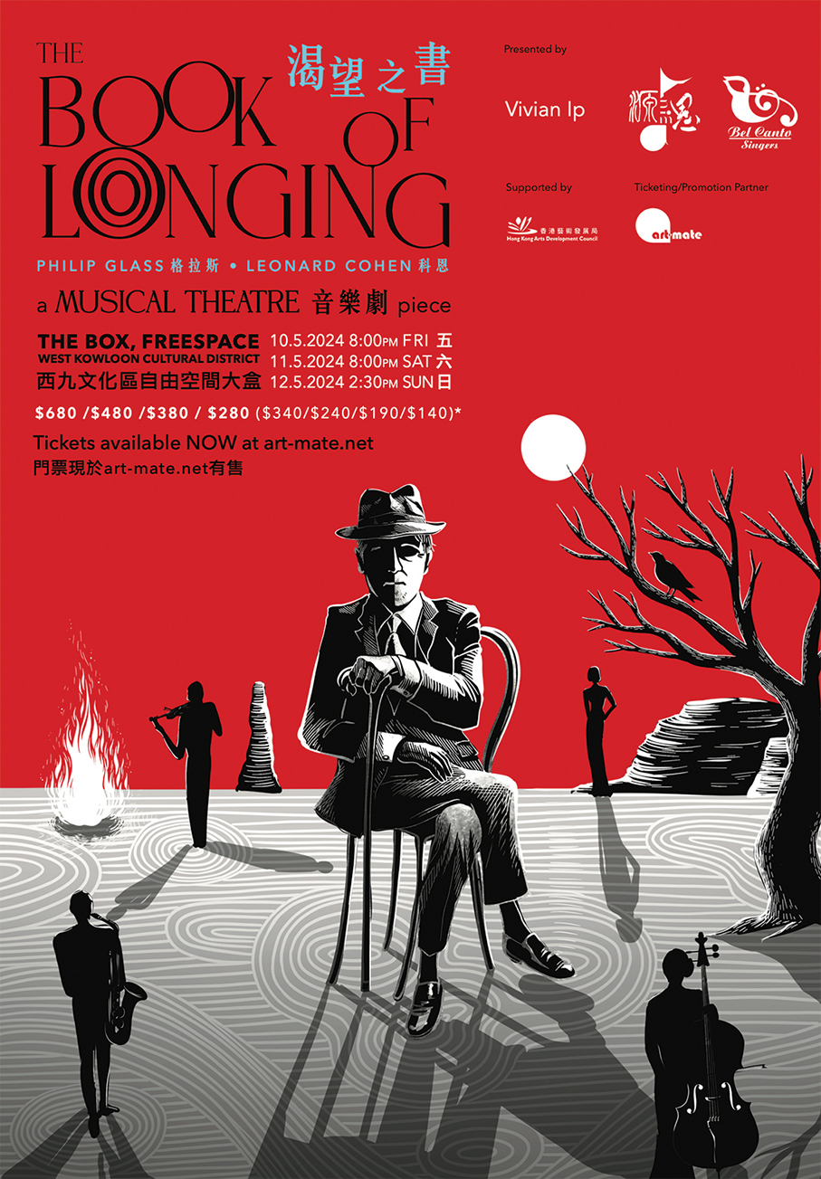 Wong, a graduate of Bard College Conservatory of Music in New York and the Hong Kong Academy for Performing Arts, is the co-founder and Music Director of the ANIMA Ensemble. She noted that “The Book of Longing” by Philip Glass is a musical theatre piece based on Leonard Cohen’s poems, resulting from Cohen’s six-year-long Zen meditation in the mountains. Philip Glass found the poems “intensely beautiful, personal, and inspiring,” and set 22 of the 167 poems to music.