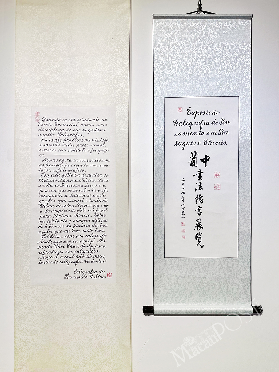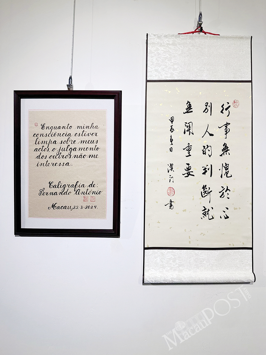 According to the statement, the project started with António, who was quoted as saying: “I attempted to write Portuguese calligraphy, an experience which satisfied me and pleased others. After numerous attempts, I had the opportunity to invite Calligraphy Master Choi Chun Heng to hold a joint exhibition of calligraphy thoughts in both languages.”