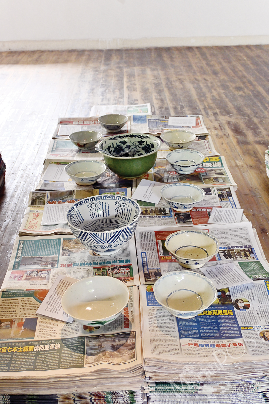 These photos show artist Elin Zhang Shuxian’s works for her exhibition “2+0/1+1 Artist-in-Residence Program: Tea Room” at the Ox Warehouse building. -Photos: Rui Pastorin