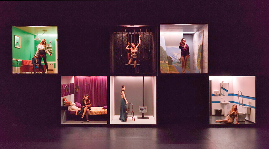 On stage, rooms expose women struggling with traumas, from dejected existences to hypersensitivities constrained by idealised beauty concepts. Brassard said that the play doesn’t praise or condemn prostitution, but addresses problems with unrealistic media portrayals of women’s bodies as unattainable goals. “The scenography, trapping women in glass rooms, conveys loneliness. Each room depicts a theme Nelly Arcan wrote about like family, religion, death, gender confusion,” she noted.