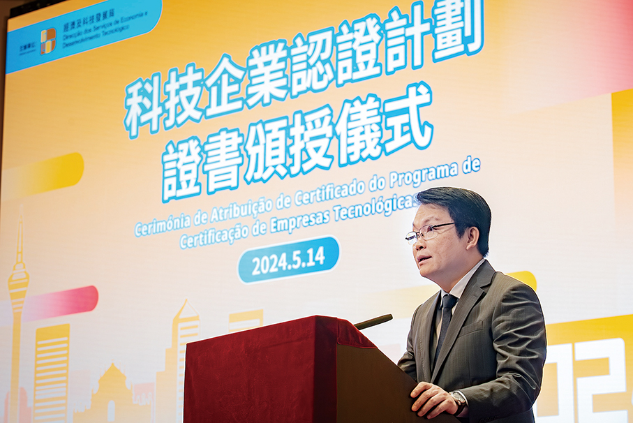 The bureau held a ceremony yesterday where Secretary for Economy and Finance Lei Wai Nong presented the five “Leading Technology Companies” awards, while DSEDT Director Tai Kin Ip presented the 19 “Potential Technology Companies” awards.
