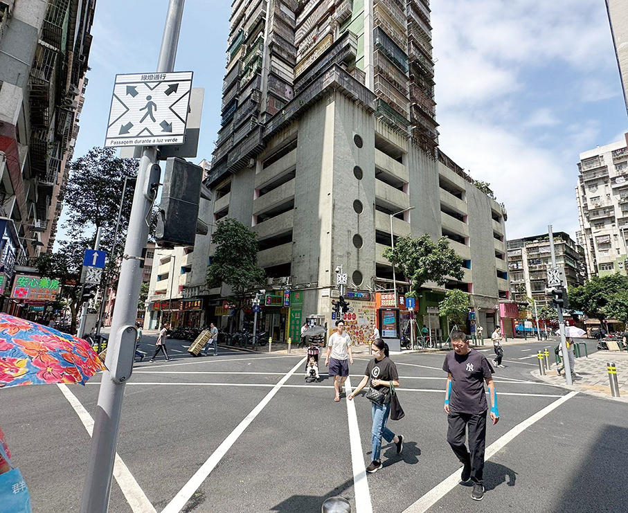 The city’s first diagonal crossing, which came into use in November 2021, is located on Rua da Serenidade, at its junction with Rua da Tribuna (看台街).