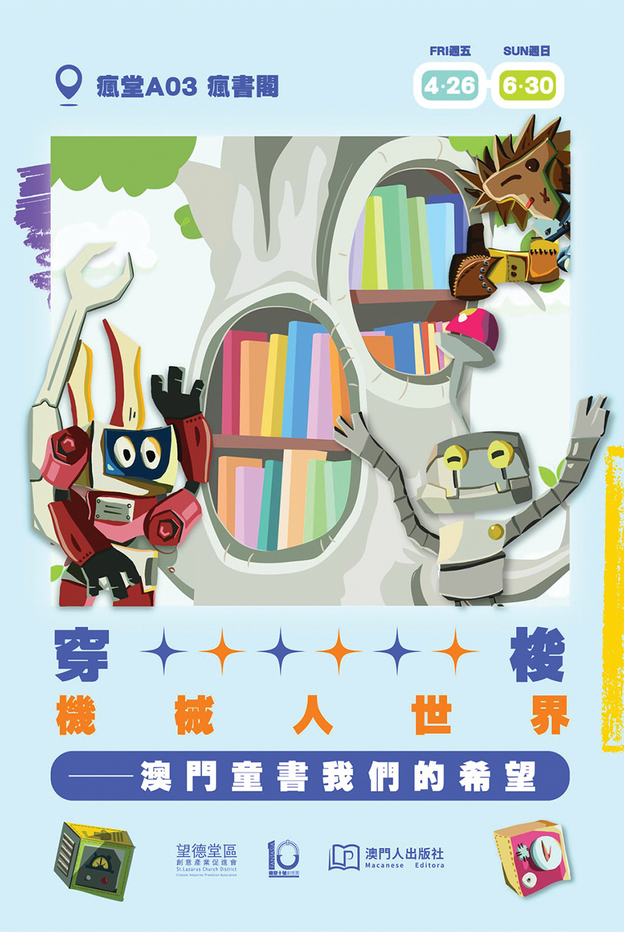 The exhibition is a collaboration between 10 Fantasia and The Macanese Publishing Ltd. The series consists of three children’s books featuring robot animals. The first book addresses the issue of school bullying, the second focuses on attention deficit hyperactivity disorder (ADHD), and the third explores autistic themes. Chan was tasked with curating the book production, while local author Cyan Cheong (張燕青) and illustrator Justin Ng (吳正楠) were involved in the writing and illustration, respectively.