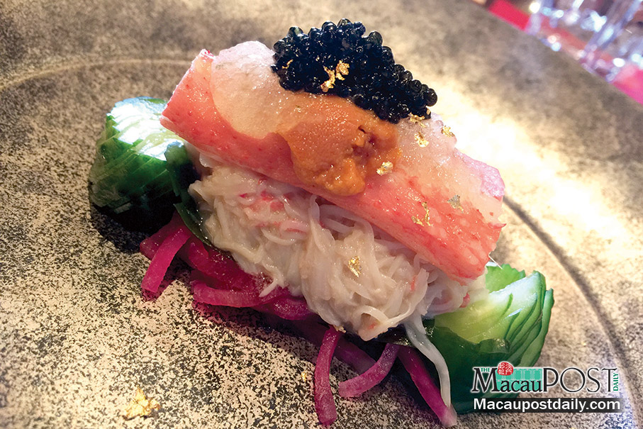 Some of the seasonal picks include a crab salad that features snow crab, caviar, sea urchin and garnished with sudachi jelly and pickled vegetables. The clean sourness from the sudachi, a Japanese citrus from Tokushima prefecture, adds an edge to the salad when consumed all in one bite to experience the explosion of flavours and texture.