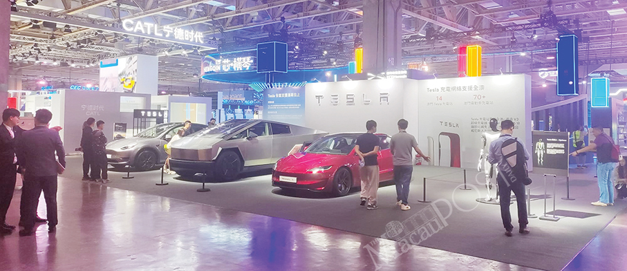 Fairgoers visit the Tesla stand at BEYOND Expo at The Venetian Convention and Exhibition Centre in Cotai yesterday. – Photo: William Chan