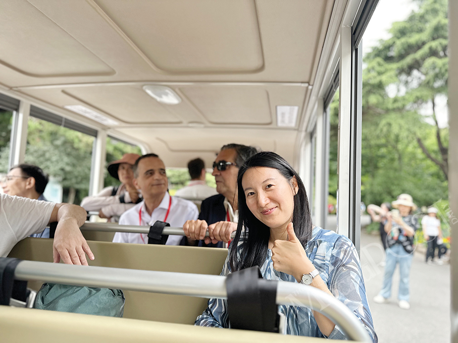 Lúcia Deng Le, deputy director of the Department of Publicity and Culture of the Liaison Office of the Central People’s Government in Macau gives the thumbs up while visiting Wuxi’s Taihu (“Greatest Lake”) Yuantouzhu Scenic Area in Jiangsu last week.