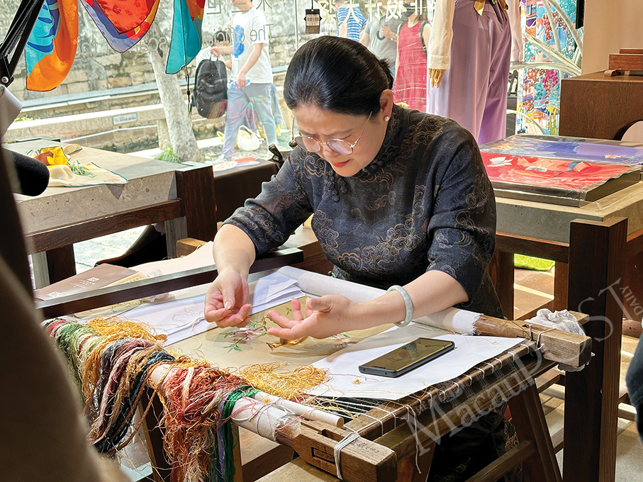 Liaison Office of the Central People’s Government in the Macau Special Administrative Region (MSAR) Publicity and Culture Department Director-General Wan Sucheng poses during a visit to Suzhou Pingjiang Historic Block in Jiangsu last week.