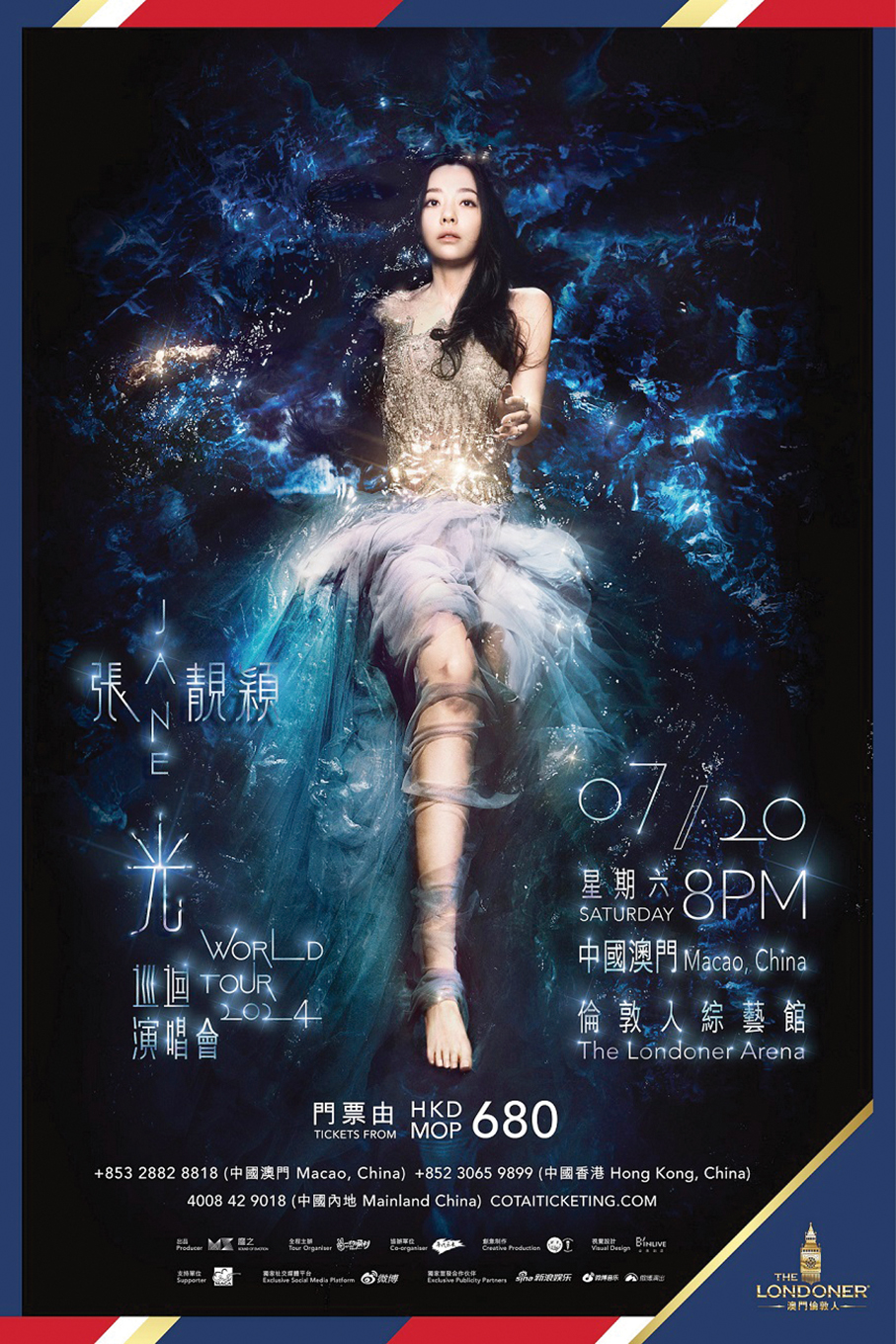 This poster recently provided by Sands China promotes the “Jane Zhang · LIGHT WORLD TOUR in Macao” in July.