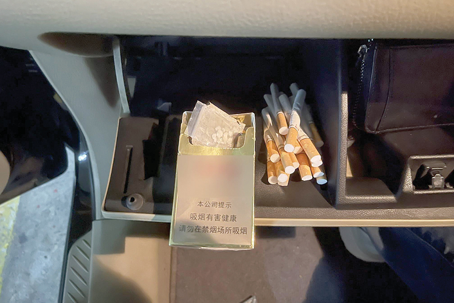 This handout photo provided by the Judiciary Police (PJ) on Friday shows evidence, such as ketamine hidden in a packet of cigarettes in a car’s glove compartment, which was seized by PJ officers on Wednesday.