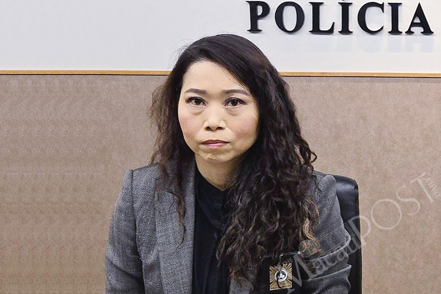 Judiciary Police (PJ) spokeswoman Lei Hon Nei looks on during yesterday’s regular press conference.