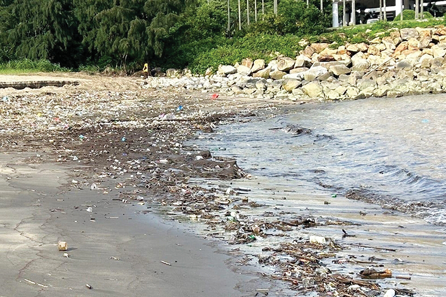 This undated handout photo provided by the Marine and Water Bureau (DSAMA) on Friday shows rubbish washed up on Coloane’s Hac Sa Beach.