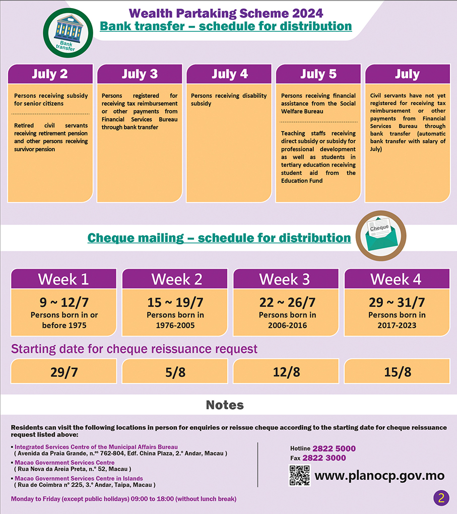 As previously, the handouts will be distributed in batches. While those in a number of special groups will receive their cash handouts by bank transfer, others will be paid with a crossed cheque to be sent to their respective designated address by post.