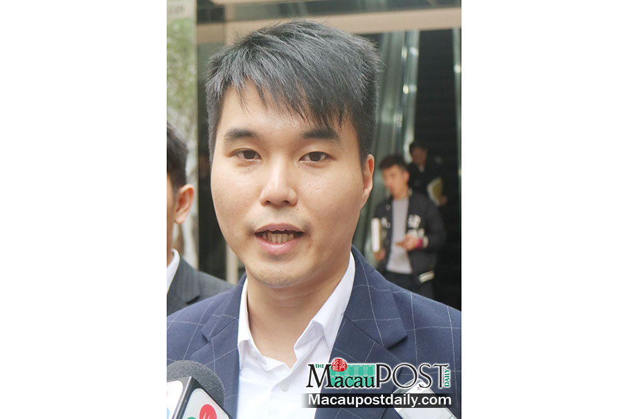 New Macau Association (NMA) Vice President Sulu Sou Ka Hou speaks to reporters outside the Public Prosecution Office (MP) in Nape yesterday.Photo: Debby Seng