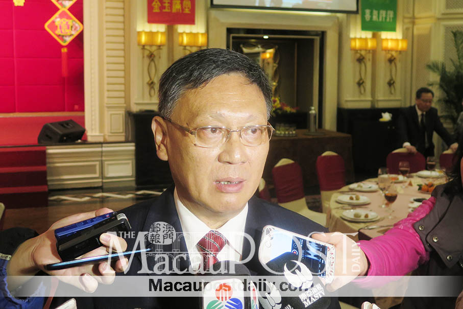 Macau Real Estate Development Association Chairman Peter Lok Wai Tak speaks to reporters at The Plaza Restaurant in Zape yesterday. Photo: Tony Wong