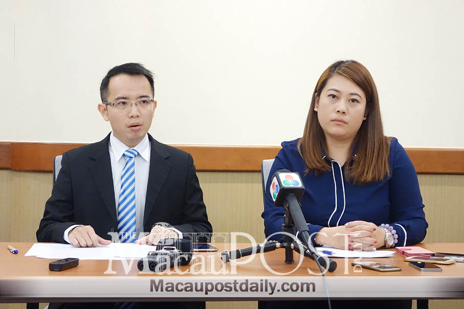 Northern District Community Service Consultative Council vice-convener Leong In Pong (left) yesterday briefs reporters after attending the council’s closed-door meeting at the Government Service Centre in Areia Preta, as councillor Chio Lan Ieng looks on. Photo: Annie Cheung