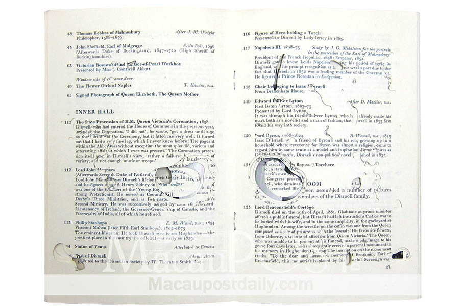 This photo taken yesterday shows the centrefold of the manual that Leong Fei In used for a book art creation themed “silverfish”.