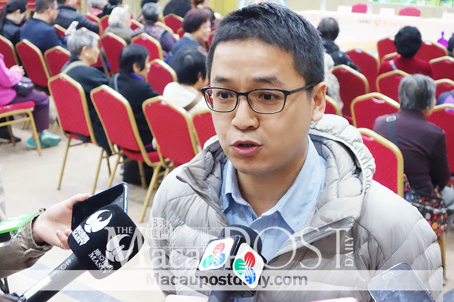 Urban Renewal Council member Ron Lam U Tou speaks to reporters on the sidelines of yesterday’s forum hosted by the Macau Institution of People’s Alliance (API) in Iao Hon district. – Photo: Annie Cheung