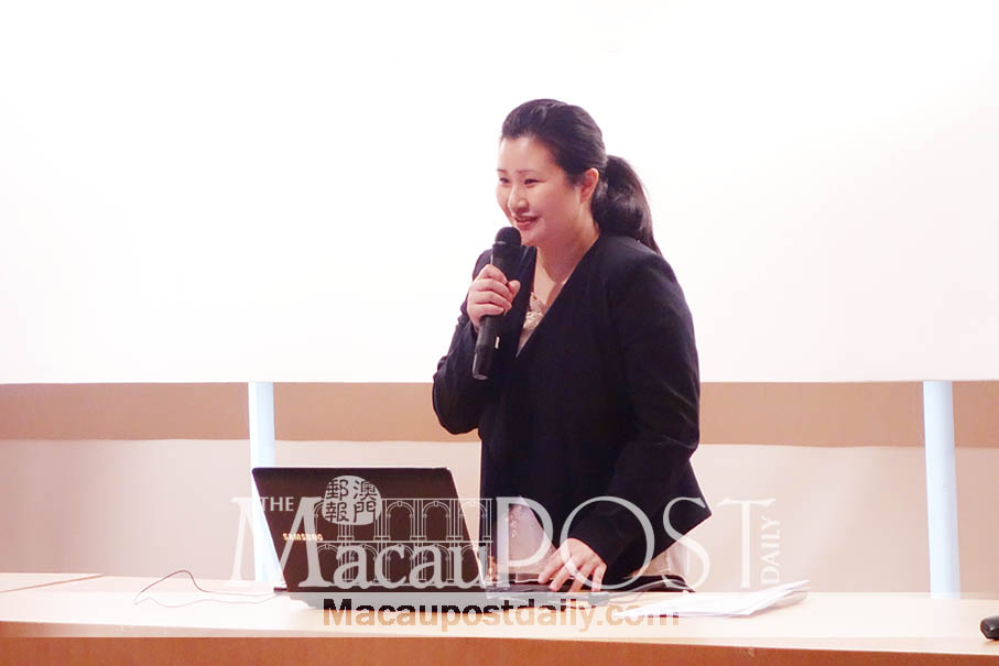 Macau Internet Research Association (MAIR) Director Athena Seng I No addresses a press conference about local Internet usage at the Macau Science and Technology Development Fund (FDCT) in Nape yesterday. – Photo: Annie Cheung