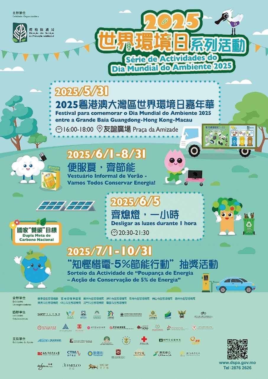 The Environmental Protection Bureau (DSAP) announced in a statement yesterday that in commemoration of the annual international ecological event “World Environment Day” on June 5, the bureau will organise a series of activities.