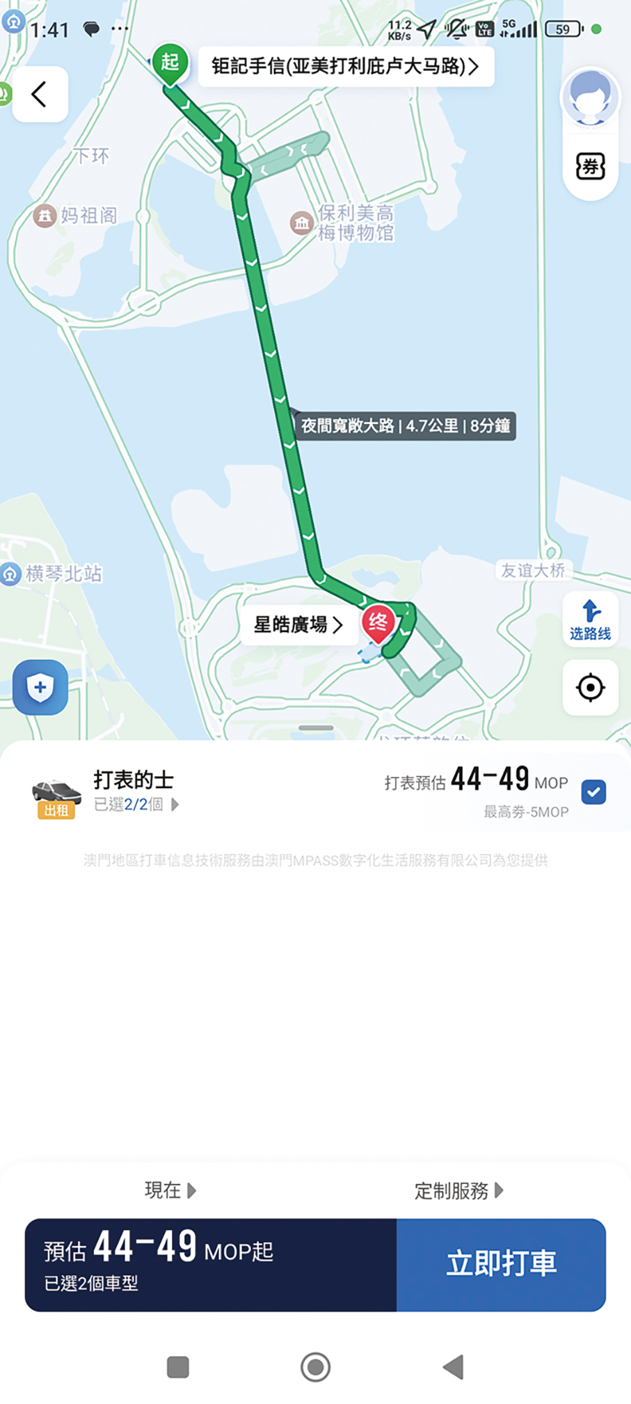 Mainland web-mapping giant Amap, known as Gaode (高德) in Chinese, said in a statement yesterday that it has launched its taxi ride-hailing services in Macau where smartphone users can use the services via both the Amap mapping app and the MPay app.