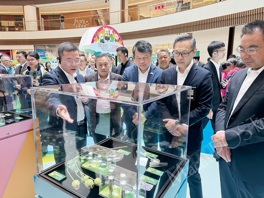 Attendees join a guided tour of real drug specimens on the sidelines of the opening ceremony for the “Citywide Anti-Drug Week” held by the Judiciary Police (PJ) at NOVA Mall in Taipa yesterday.