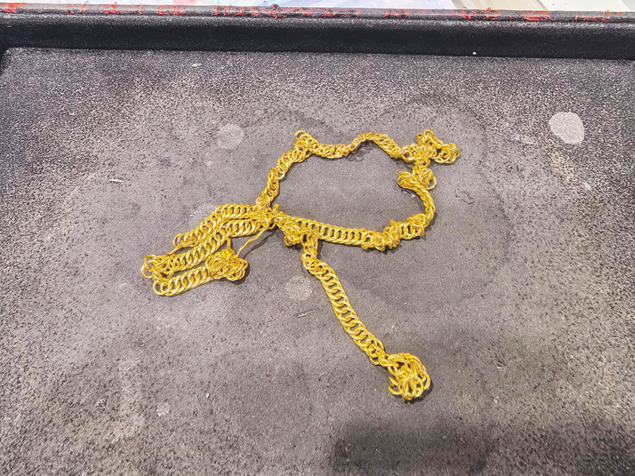 This handout photo provided by the Judiciary Police (PJ) on Saturday shows the gold chain seized from the suspect.