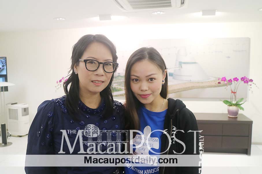 Macau Autism Association (MAA) Director-General Nicole Chan Sio Man (left) and Sara Violeta das Neves Chiang, a psychotherapist by profession and member of the MAA, pose yesterday on the sidelines of a sharing session about experiences and skills required to parent a child with autism, at the Macau Science Centre in Nape.